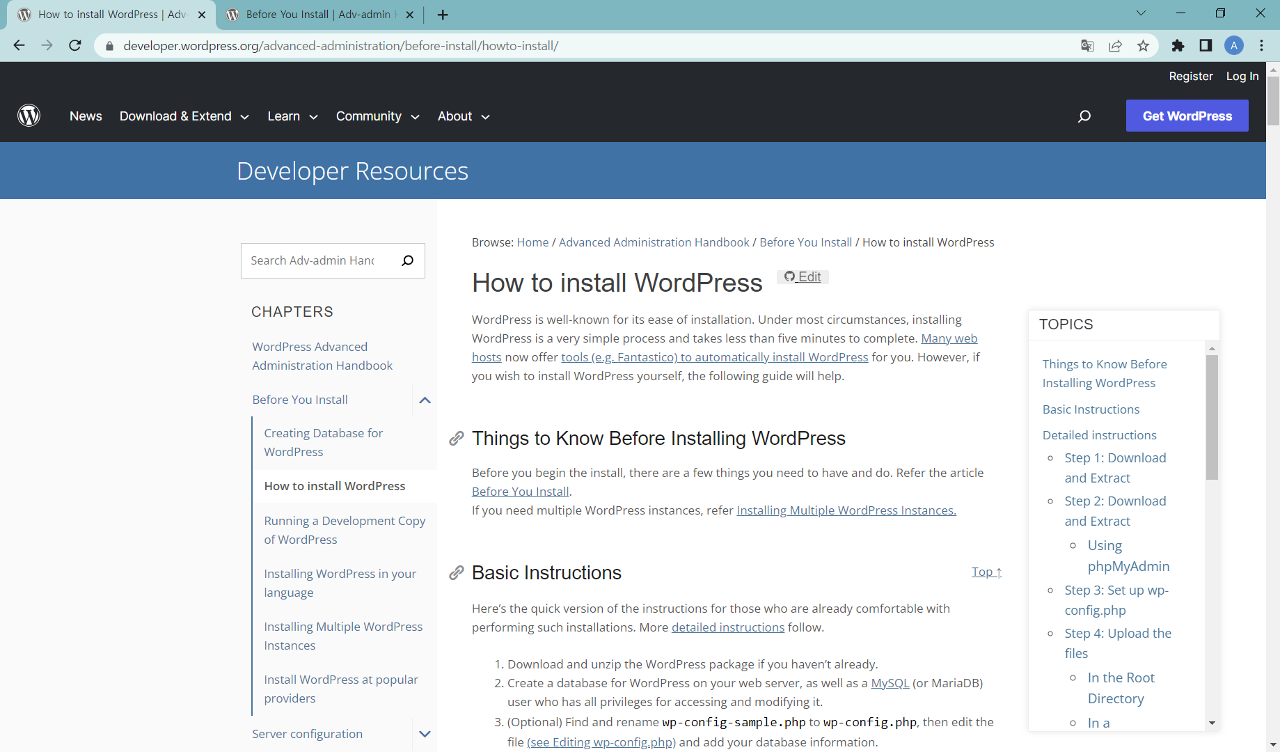 *위의 설치 내용은 https://developer.wordpress.org/advanced-administration/before-install/howto-install/#detailed-step-3에서 참조함.