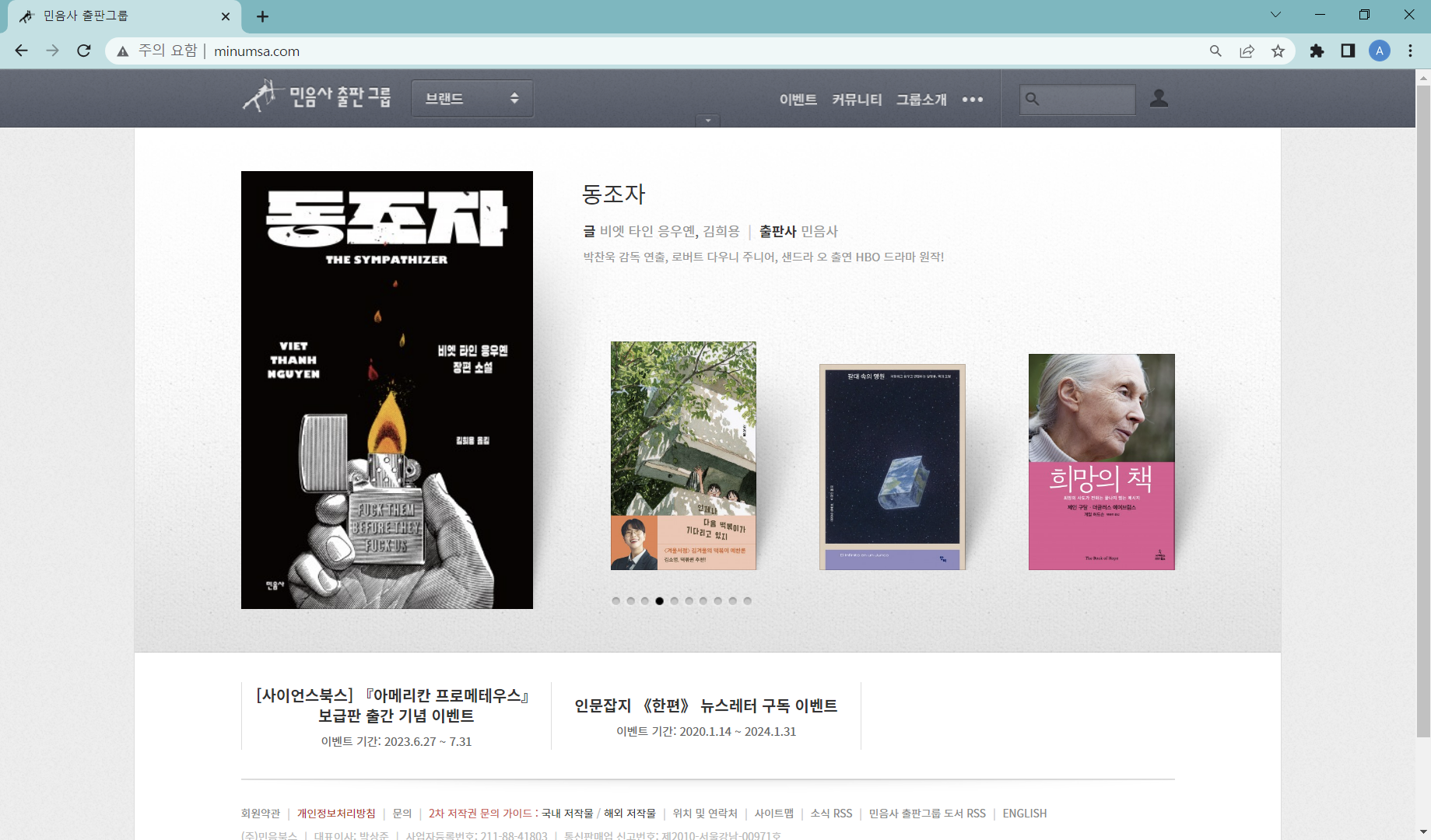 워드프레스로 만들어진 사이트의 예시- 민음사